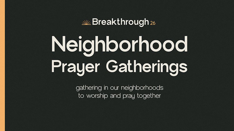 Join us for Breakthrough Neighborhood Prayer Gatherings on Wednesday, January 14 as we come together in homes across our community to seek God’s presence and pray for breakthrough in our lives, families, and city. These intimate gatherings are an opportunity to connect with your neighbors in faith, lift up prayers together, and experience the power of united prayer. Whether you’ve been part of The Heights for years or are new to our community, you’re welcome to join a gathering near you.