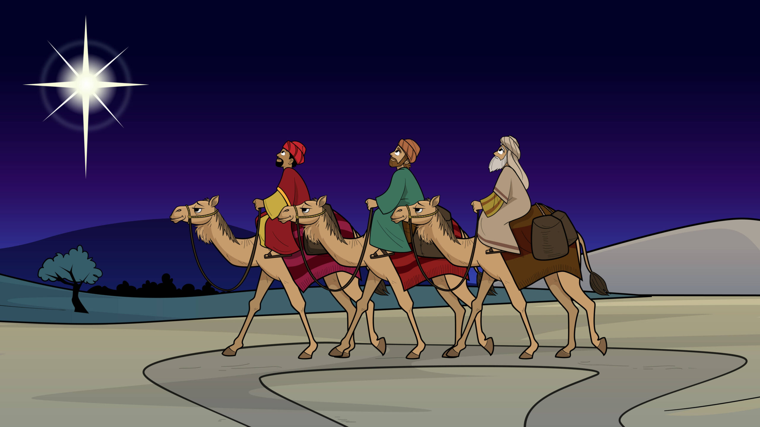 WISE MEN FOLLOW A SPECIAL STAR TO JESUS SO THEY CAN WORSHIP HIM AND GIVE HIM GIFTS.